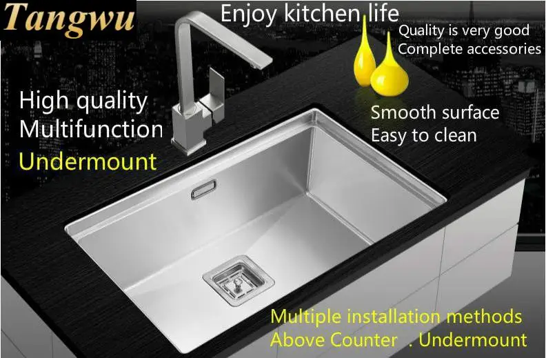 Best . (0% Off) Buy Free Shipping Apartment High Quality Kitchen Manual Sink Single Trough Vogue 304 Stainless Steel Mini Hot Sell 580x430 MM Price Online.