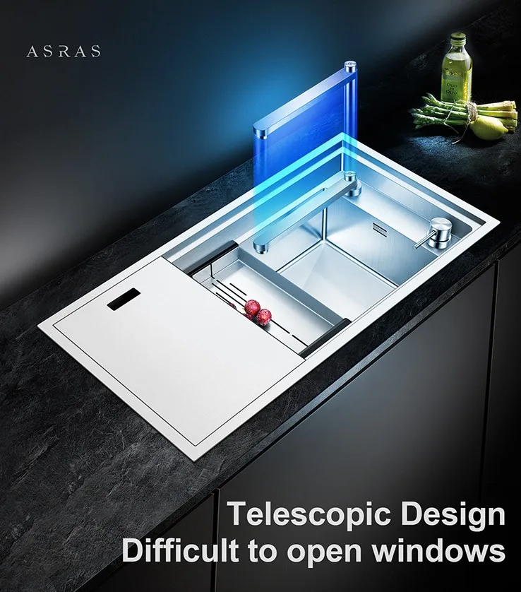 Special Offer Asras 8243E+3060 SUS304 Handmade Kitchen Sink Hidden Sink Covered Lids Brushed With Drainer Faucet Tap Free Shipping Discount 0% Today!