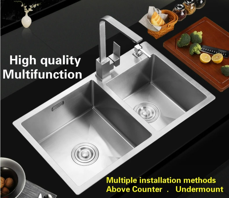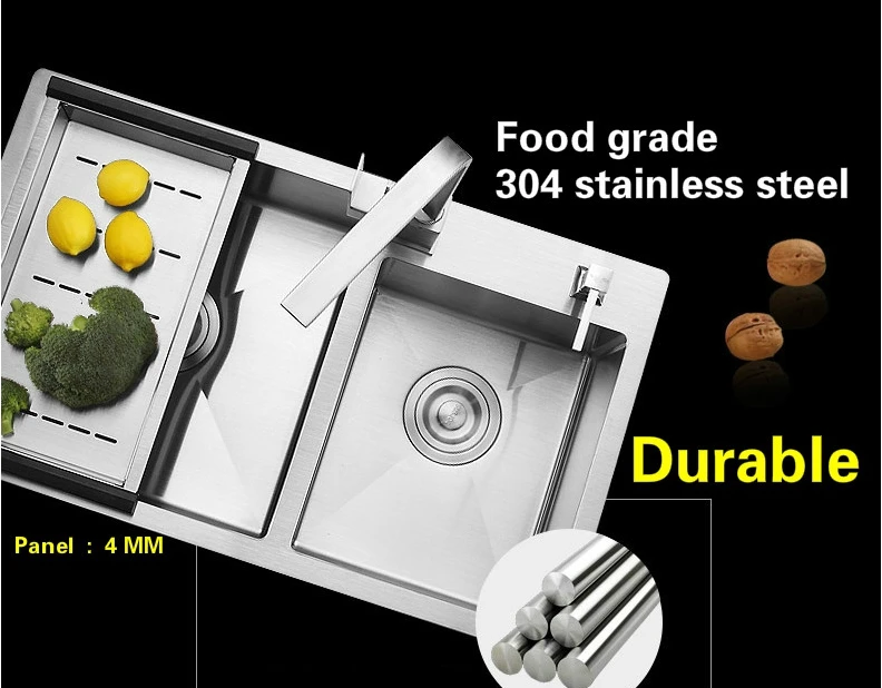 Best . (0% Off) Buy Free Shipping Apartment Kitchen Manual Sink Double Groove Food Grade 304 Stainless Steel Hot Sell Big 84x45 CM Cheap Online.