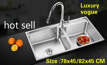 Product Name: Free Shipping Apartment Luxury Kitchen Double Groove Sink Vogue Do The Dishes 304 Stainless Steel Hot Sell 780x450/820x450 MM