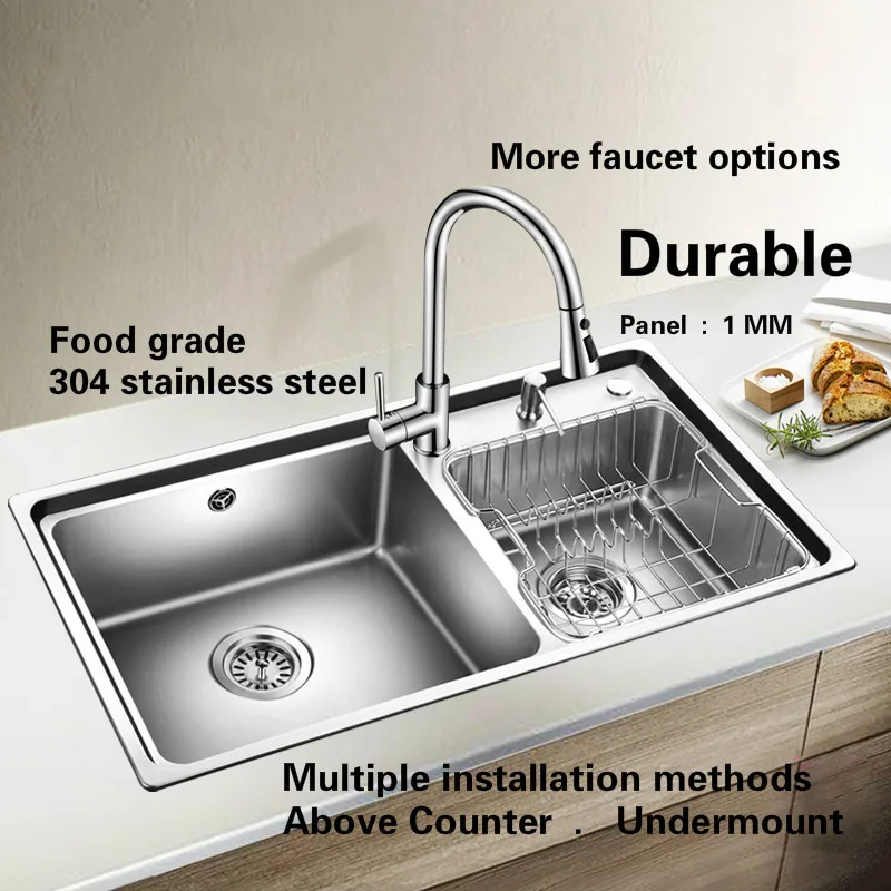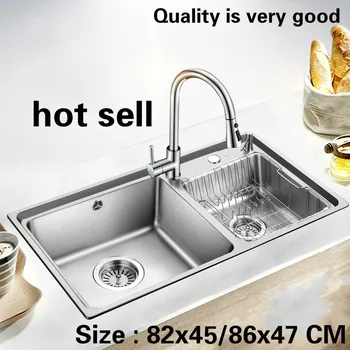 Special Offer Free Shipping Standard Fashion Kitchen Double Groove Sink 304 Food Grade Stainless Steel Hot Sell Big 820x450/860x470 MM Discount 0% Today!