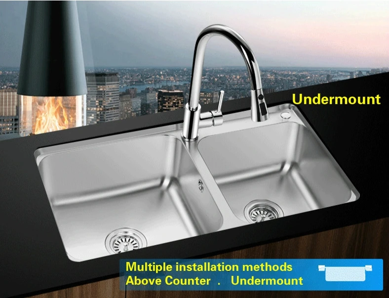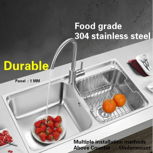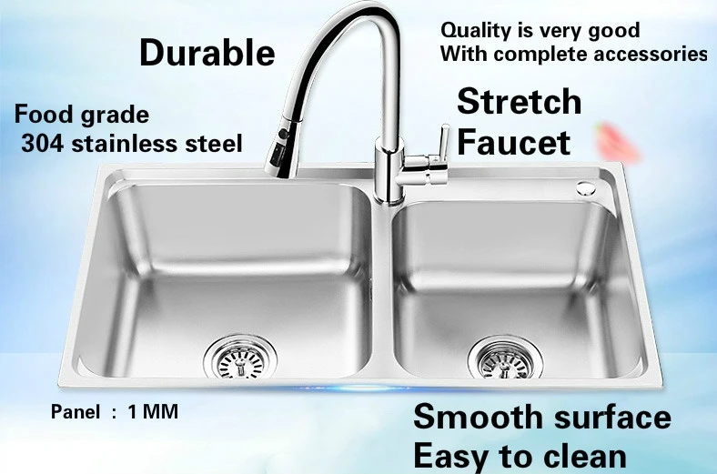 Product Name: Free Shipping Standard Fashion Kitchen Double Groove Sink Durable 304 Food Grade Stainless Steel Hot Sell 78x43/82x45 CM