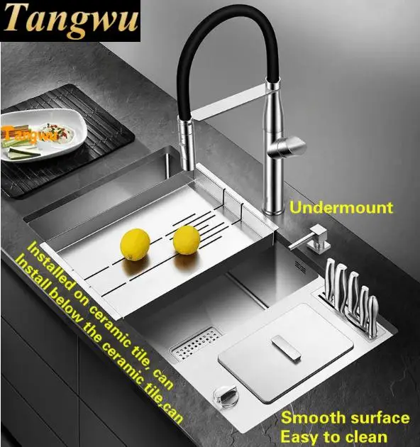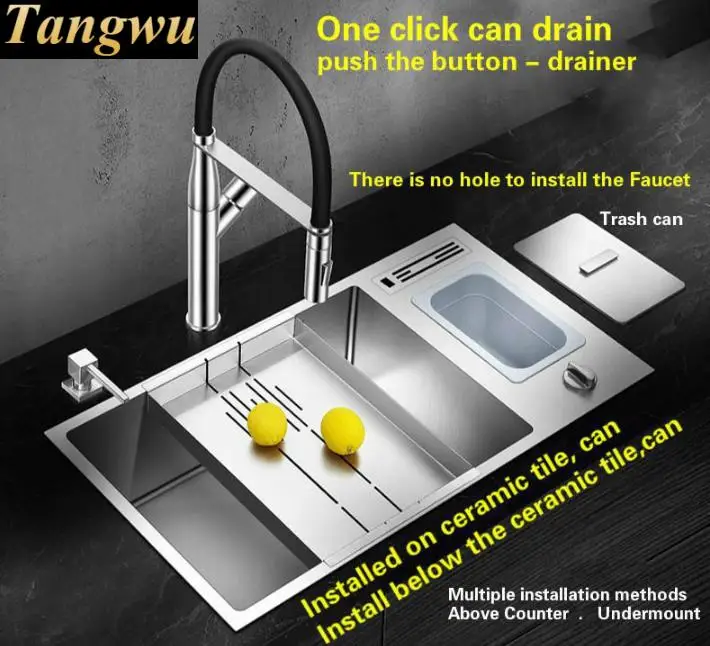 Best . (0% Off) Buy Free Shipping Apartment Luxury Push Button Drainer Big Kitchen Manual Sink Single Trough Stainless Steel Hot Sell 76x42 CM Cheap Online.