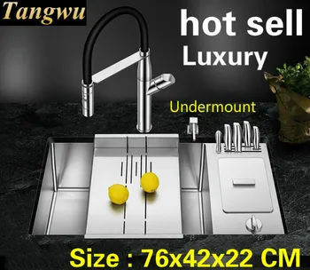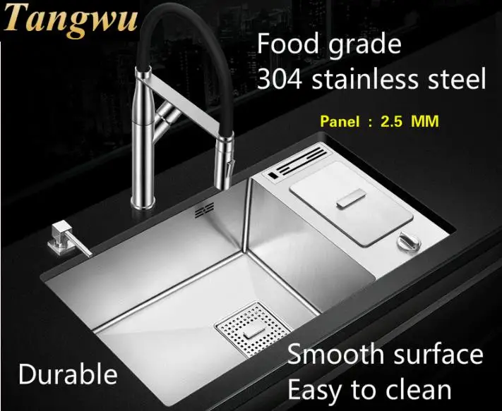 Product Name: Free Shipping Apartment Luxury Push Button Drainer Big Kitchen Manual Sink Single Trough Stainless Steel Hot Sell 76x42 CM