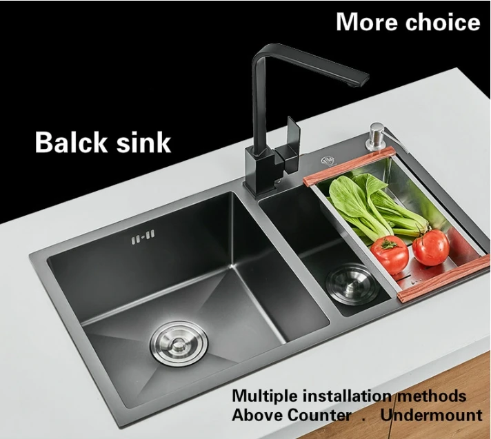 Product Name: Free Shipping Home Kitchen Manual Sink Double Groove 304 Stainless Steel Do The Dishes Large Hot Sell 780x430/820x450 MM