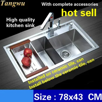 Product Name: Free Shipping Luxury Fashion Kitchen Sink Manual Double - Groove 4 Mm Thick Food Grade 304 Stainless Steel Durable 780x430 MM