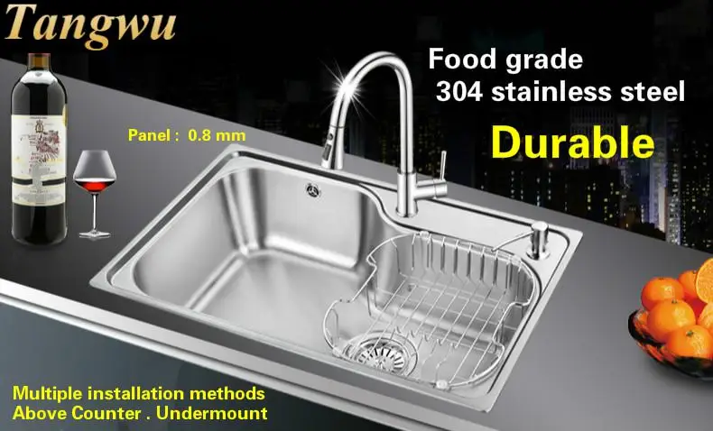 Best . (0% Off) Buy Free Shipping Standard Hot Sell Kitchen Sink 0.8 Mm Single Slot Food Grade 304 Stainless Steel Durable 75x45 CM Cheap Online.
