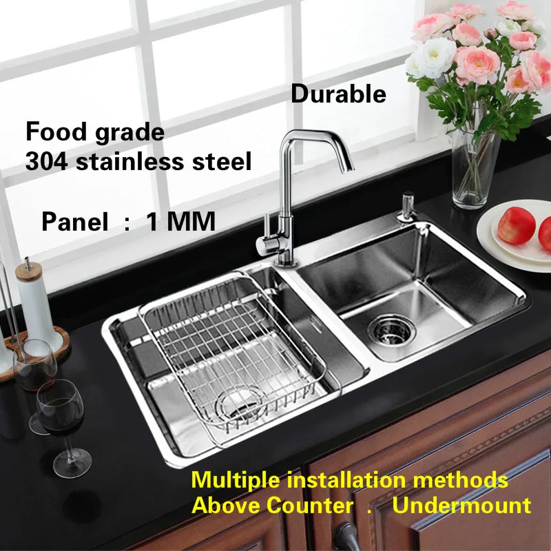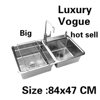 Special Offer Free Shipping Standard Individuality Big Kitchen Sink Food Grade 304 Stainless Steel Double Trough Hot Sell 84x47 CM Discount 0% Today!