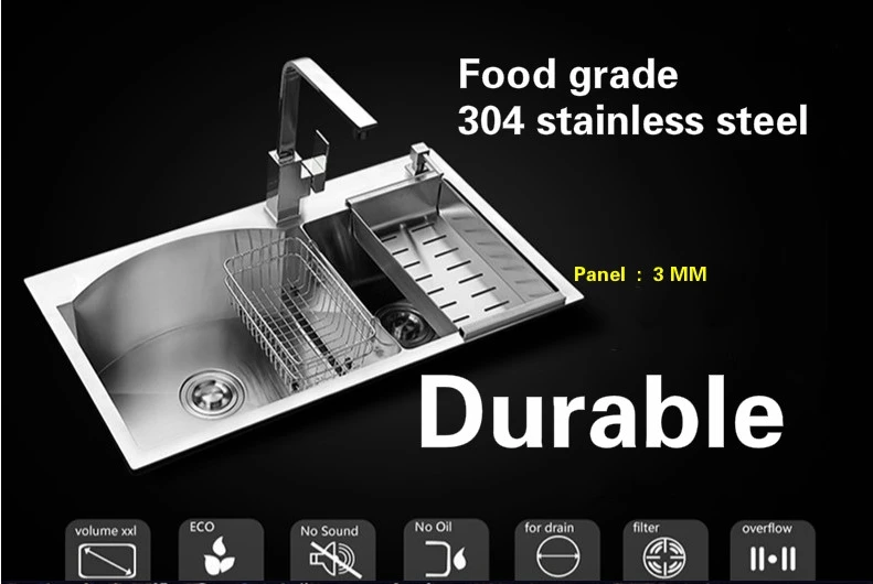 Product Name: Free Shipping Apartment Do The Dishes Luxury Kitchen Manual Sink Double Groove Food Grade 304 Stainless Steel Hot Sell 78x43 CM