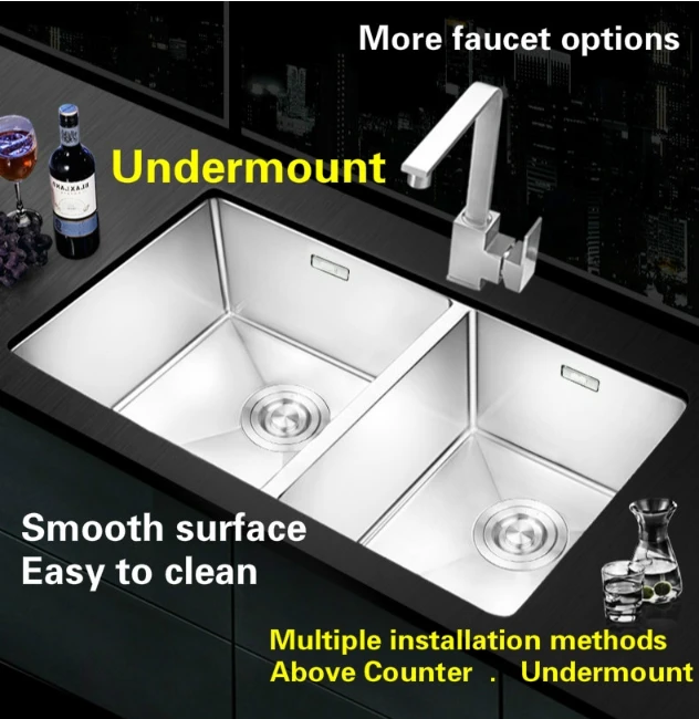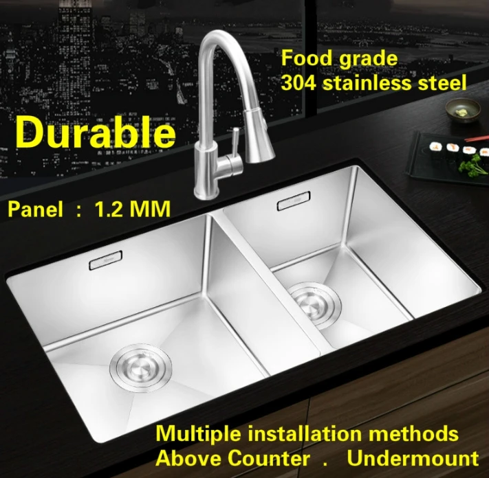 Best . (0% Off) Buy Free Shipping Apartment Food Grade 304 Stainless Steel Durable Large Kitchen Manual Sink Double Groove Hot Sell 81x44 CM Price Online.