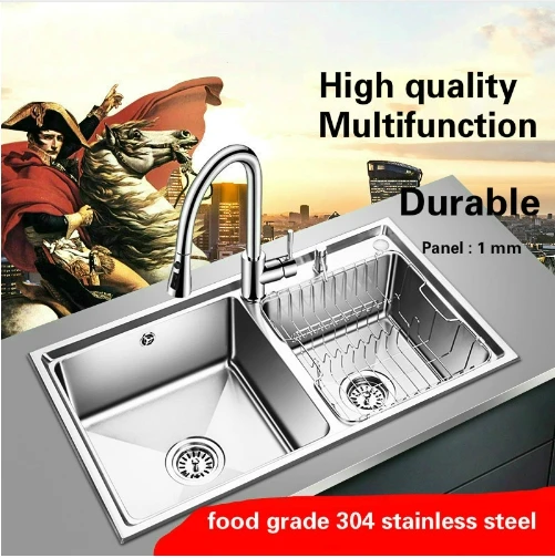 Product Name: Free Shipping Apartment High Qualit Kitchen Double Groove Sink Do The Dishes Standard 304 Stainless Steel Big Hot Sell 80x45 CM