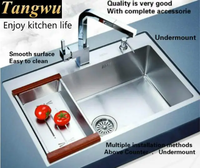 Best . (0% Off) Buy Free Shipping Apartment Kitchen Manual Sink Single Trough Durable 304 Stainless Steel Big Vogue Hot Sell 750x480 MM Price Online.