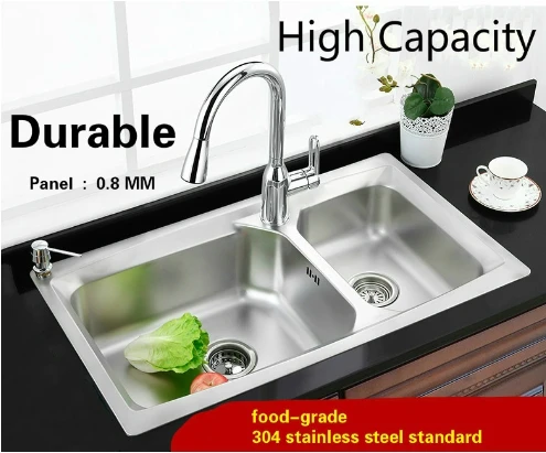 Best . (0% Off) Buy Free Shipping Apartment Luxury Wash Vegetables Kitchen Double Groove Sink 304 Stainless Steel Big Hot Sell 87x49 CM Cheap Online.