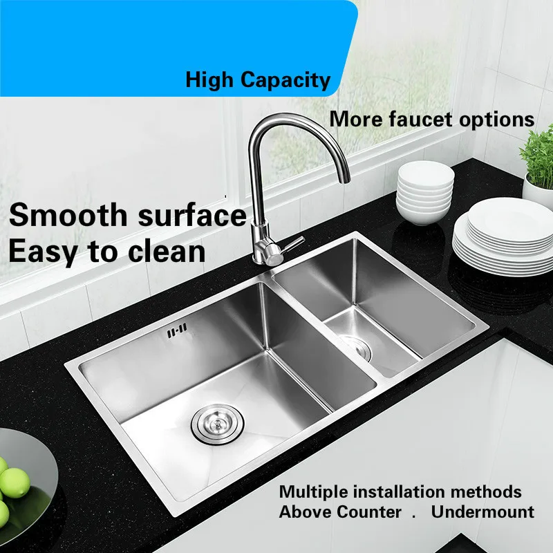 Product Name: Free Shipping Fashion Standard Individuality Manual Sink Double Groove Food Grade 304 Stainless Steel Hot Sell 770x430 MM