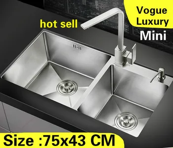 Product Name: Free Shipping Home Durable 304 Stainless Steel Wash Vegetables Small Kitchen Manual Sink Double Groove High Quality 750x430 MM