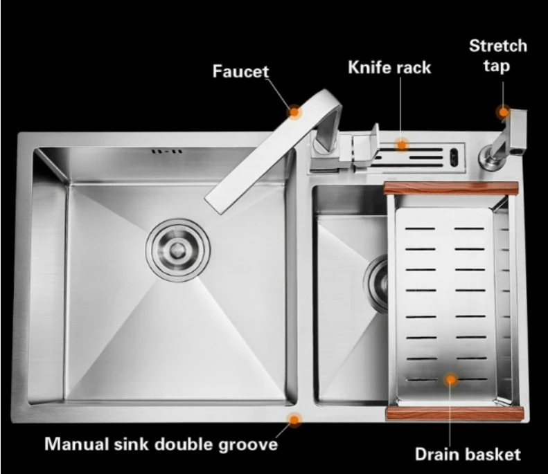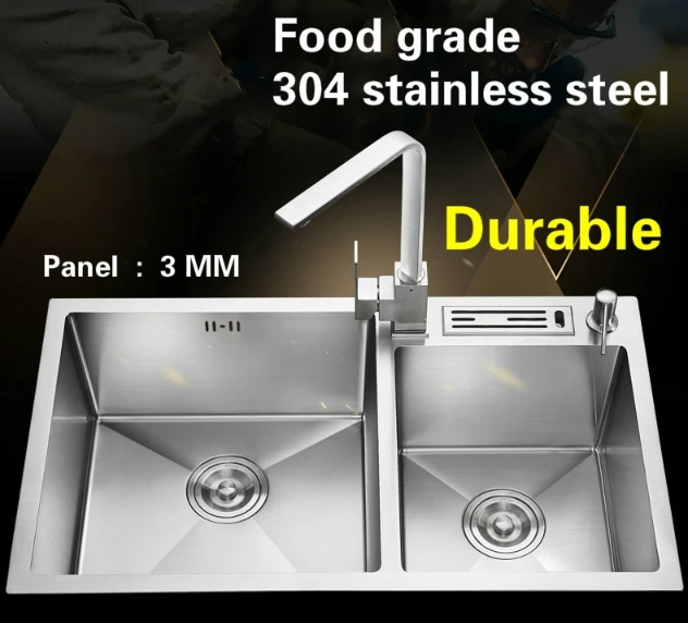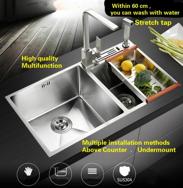 Best . (0% Off) Buy Free Shipping Home Durable 304 Stainless Steel Wash Vegetables Small Kitchen Manual Sink Double Groove High Quality 750x430 MM Price Online.