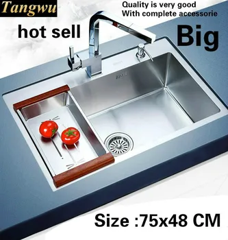 Product Name: Free Shipping Hot Sell Luxury Standard Big Kitchen Manual Sink Single Trough Food Grade Durable 304 Stainless Steel 75x48 CM