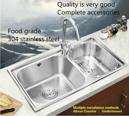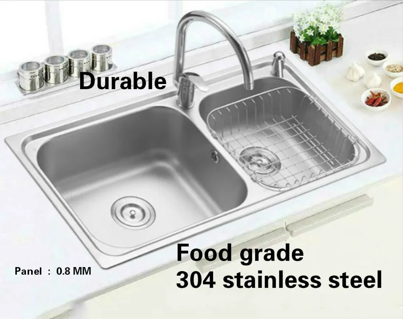 Best . (0% Off) Buy Free Shipping Large Kitchen Sink 0.8mm Durable Food Grade 304 Stainless Steel Standard Double Groove Fashion Hot Sell 83x45 CM Cheap Online.