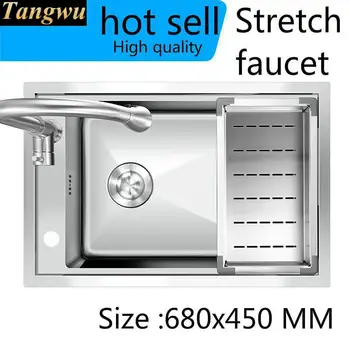Special Offer Free Shipping Standard Stretch Faucet Luxury Kitchen Manual Sink Single Trough Food-grade Stainless Steel Hot Sell 680x450 MM Discount 0% Today!