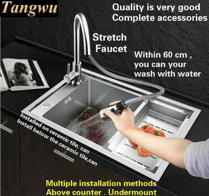 Best . (0% Off) Buy Free Shipping Standard Stretch Faucet Luxury Kitchen Manual Sink Single Trough Food-grade Stainless Steel Hot Sell 680x450 MM Cheap Online.