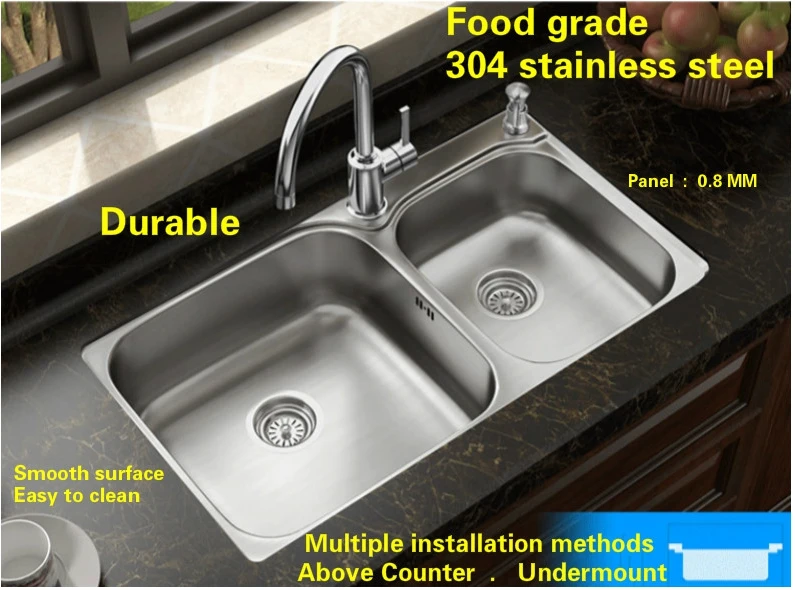 Product Name: Free Shipping Standard Luxurious Hot Sell Kitchen Double Groove Sink Food Grade Stainless Steel Whole Drawing Durable 830x480 MM