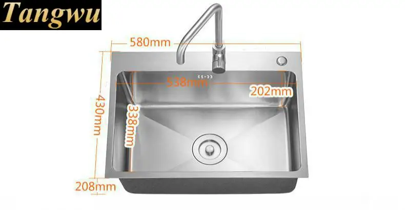 Product Name: Tangwu Apartment 304 Stainless Steel Kitchen Sink Thickening Single Slot And Durable Hot Sell 580x430x208 Mm