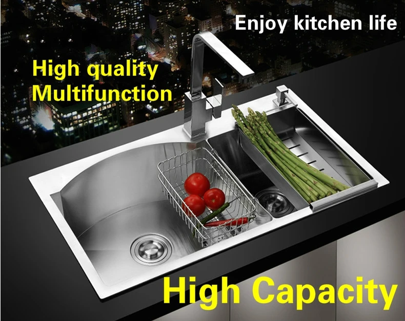 Best . (0% Off) Buy Free Shipping Apartment High Quality Wash Vegetables Kitchen Manual Sink Double Groove 304 Stainless Steel Hot Sell 780x430 MM Cheap Online.