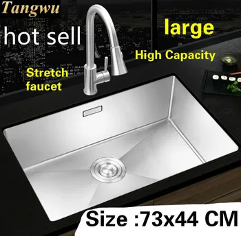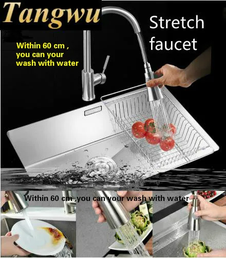 Product Name: Free Shipping Apartment Kitchen Manual Sink Single Trough Stretch Faucet Do The Dishes 304 Stainless Steel Hot Sell 730x440 MM