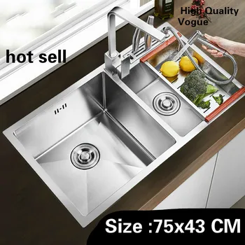 Product Name: Free Shipping Home Durable 304 Stainless Steel Wash Vegetables Kitchen Manual Sink Double Groove Multifunction 750x430 MM