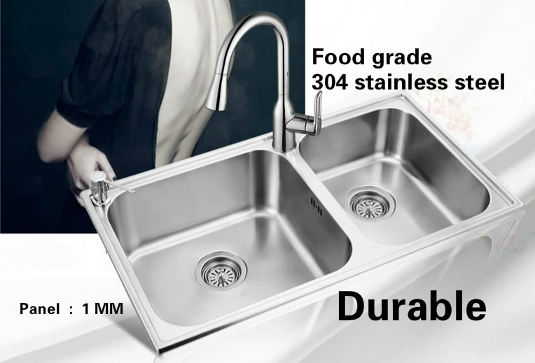 Best . (0% Off) Buy Free Shipping Hot Sell Standard Luxury Big Kitchen Double Groove Sink 304 Food Grade Stainless Steel Wash The Dishes 80x45 CM Price Online.