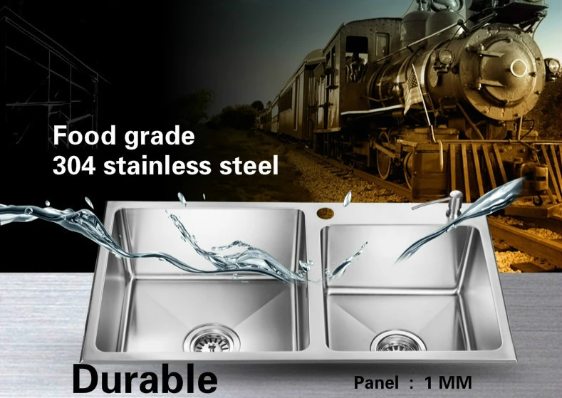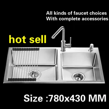 Product Name: Free Shipping Manual Double Groove Kitchen Sink 1.2 Mm Food Grade 304 Stainless Steel Standard Hot Sell 780x430 MM