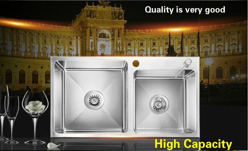 Best . (0% Off) Buy Free Shipping Manual Double Groove Kitchen Sink 1.2 Mm Food Grade 304 Stainless Steel Standard Hot Sell 780x430 MM Cheap Online.