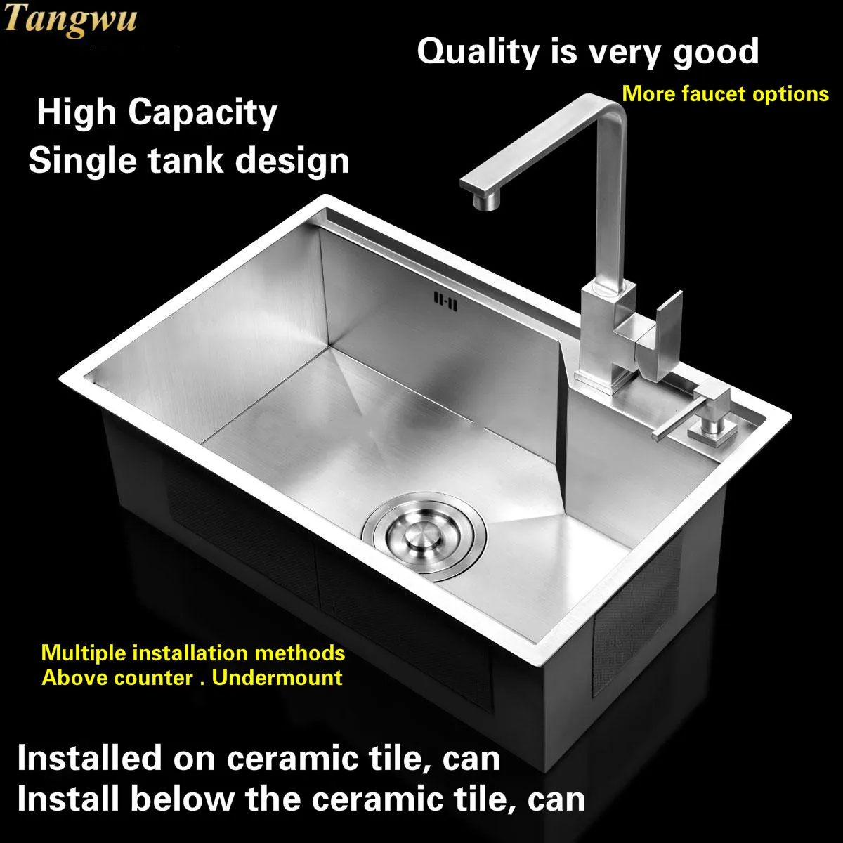 Product Name: Tangwu Apartment Quality 4 Mm Thick Food-grade 304 Stainless Steel Kitchen Sink Better Handmade Single Slot Durable 65x43 CM
