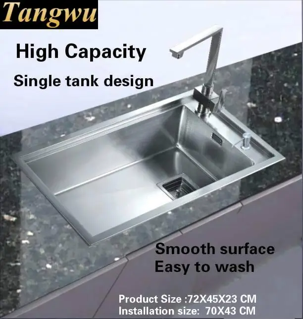 Product Name: Tangwu High-grade Kitchen Sink Handmade 1.2 MM Thick Food-grade 304 Stainless Steel Large Single Slot 72x45x23 Cm