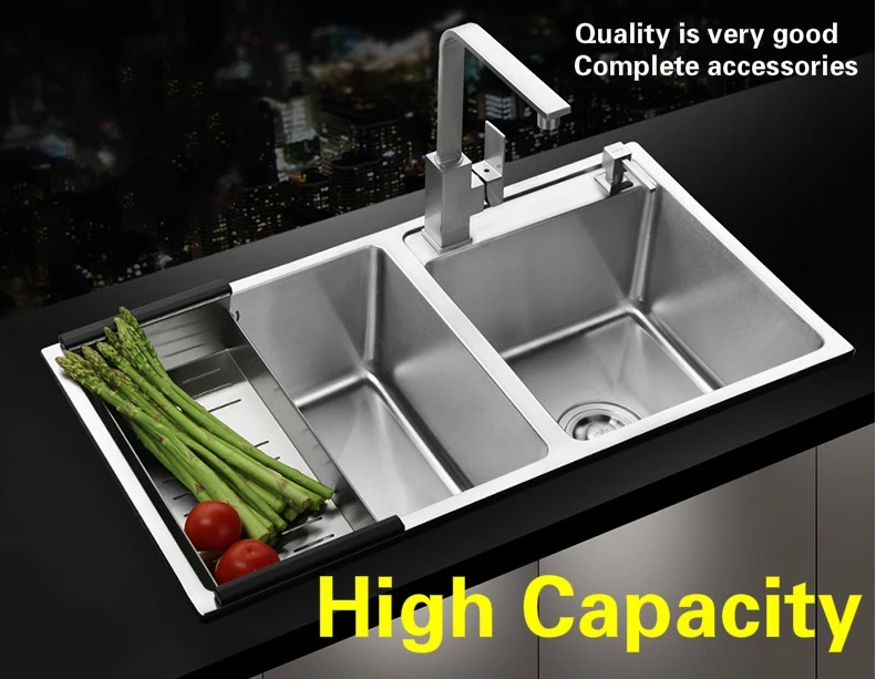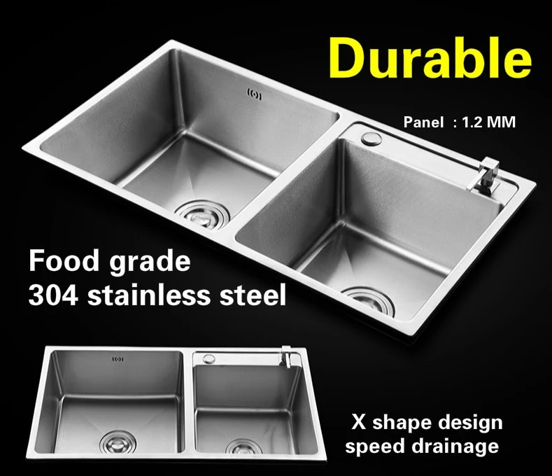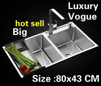 Best . (0% Off) Buy Free Shipping Apartment Wash Vegetables Big Kitchen Manual Sink Double Groove Durable 304 Stainless Steel Hot Sell 800x430 MM Cheap Online.